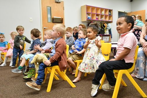 Our preschool environment is designed to meet your child’s developmental needs while teaching them the foundational truths of who God is. Your child will be engaged in a Bible story while in a safe environment for infants – 5-year-old to explore the world around them, develop social skills and begin to learn that God made them, and God loves them!
